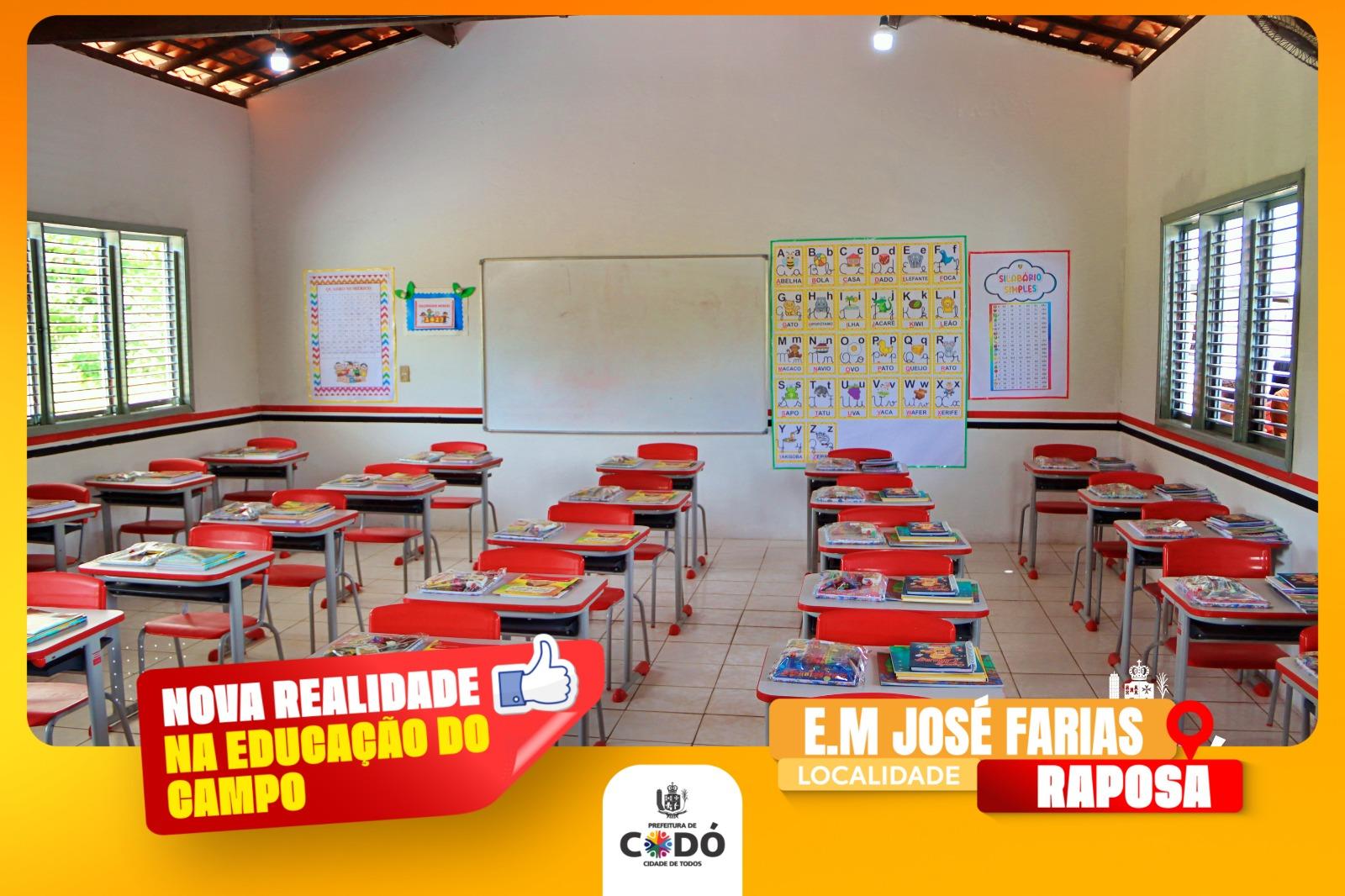 A Escola do Povoado Raposa, conhecida como E. M. José Farias, recebeu melhorias estruturais e foi equipada com novos livros e material didático, visando aprimorar o processo de ensino-aprendizagem. A iniciativa demonstra o compromisso da Prefeitura em oferecer uma educação de qualidade para os codoenses.